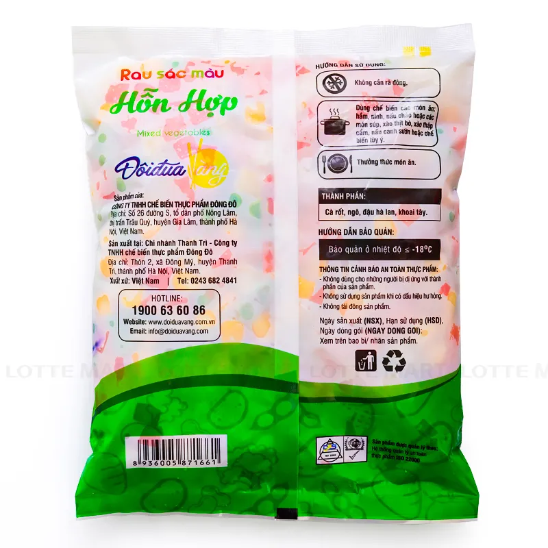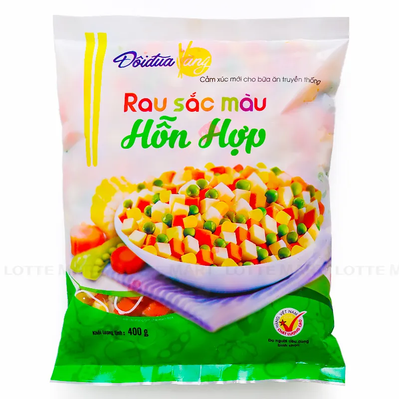 Sản phẩm Rau hỗn hợp đông lạnh Đôi Đũa Vàng đã được sơ chế sẵn theo dây chuyền hiện đại và khép kín, đảm bảo an toàn cũng như tiết kiệm tối đa thời gian chế biến. Sản phẩm là sự lựa chọn tin cậy cho các bà nội trợ.