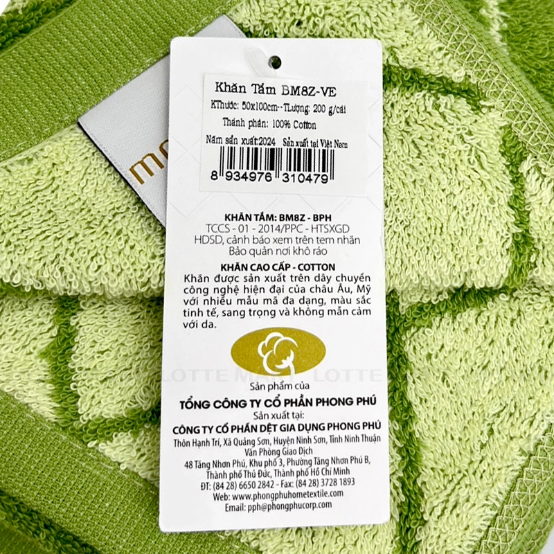 Khăn Tắm Mollis Cotton Phong Phú BM8Z Màu Ve 50 x 100cm 200g