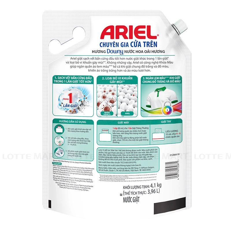 Nước Giặt Ariel Hương Downy Oải Hương Cho Máy Giặt Cửa Trên Túi 4.1kg