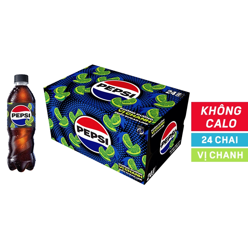 Thùng 24 Chai Nước Ngọt Pepsi Vị Chanh Không Calo 390ml