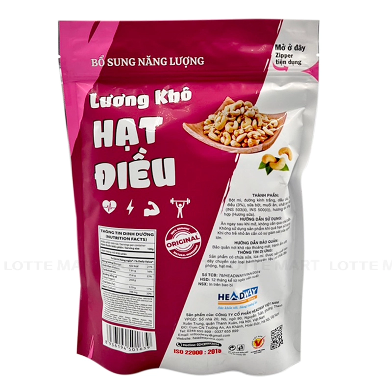 - Lương Khô Headway Vị Hạt Điều là sản phẩm dinh dưỡng tiện lợi, giúp cung cấp năng lượng nhanh chóng và bền vững cho người bận rộn hoặc vận động viên. Sản phẩm với thành phần giàu protein, chất béo không bão hòa và khoáng chất cần thiết.