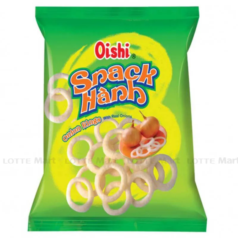 - Snack Hành Oishi Orion Rings được làm từ những nguyên liệu tự nhiên như bột mì, tinh bột sắn, dầu ăn, khoai tây miếng, hành... Bánh có dạng vòng nhỏ, màu vàng hấp dẫn, thơm mùi khoai tây kết hợp cùng vị hành đặc trưng, mang đến cho bạn trải nghiệm vị giác đầy thích thú.