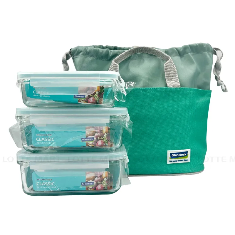 Bộ Túi Giữ Nhiệt Kèm 2 Hộp Thủy Tinh Glasslock 710ml Và 1 Hộp 400ml (Giao Màu Ngẫu Nhiên)