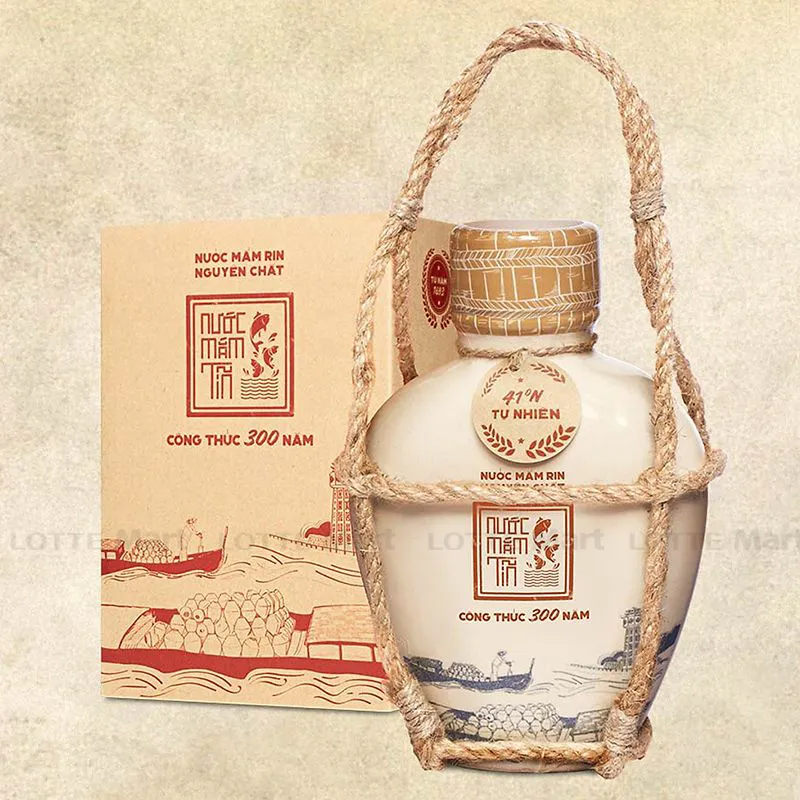 Nước Mắm Tĩn Nhãn Xưa 41 Độ Đạm Bình Gốm là sản phẩm quý hiếm độc nhất tại Việt Nam, nước mắm được đựng trong tĩn gốm 500ml với quai xách dây thừng độc đáo, sang trọng.