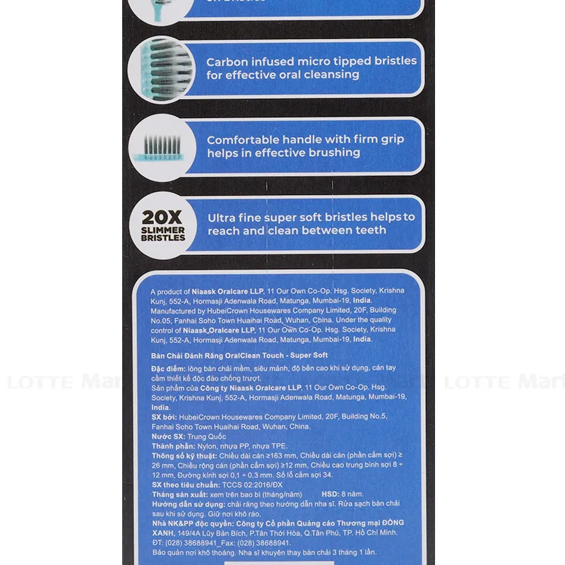 - Bàn Chải Đánh Răng Oral Clean Touch Extra Soft với lông siêu mềm dành cho răng nhạy cảm được thiết kế với lông bàn chải mềm, siêu mảnh, độ bền cao khi sử dụng, cán tay cầm thiết kế độc đáo chống trượt, chải sạch nhẹ nhàng, giúp bảo vệ sức khỏe răng miệng.