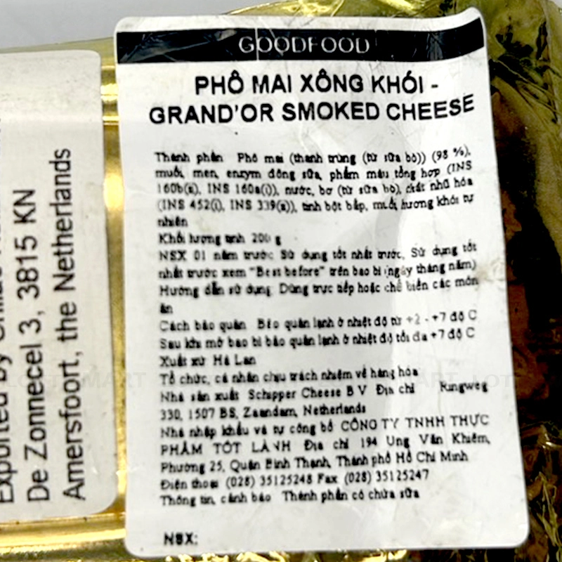 - Phô Mai Grand'Or Xông Khói là loại phô mai xông khói thơm ngon, giàu chất dinh dưỡng, cung cấp năng lượng cho một ngày làm việc hay học tập năng động. Với hương vị thơm ngon, đậm đà và mềm mịn, phô mai có vị mặn mà vừa phải, rất dễ ăn.
