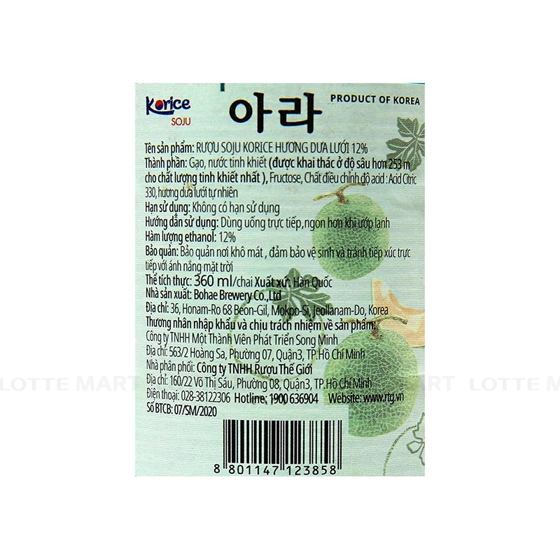 Rượu Soju Korice Vị Dưa Lưới 12% ABV Chai 360ml