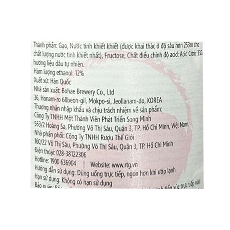 - Gạo, nước tinh khiết (được lấy nguồn từ nước đá nham thạch ở vùng đảo núi lửa Jeju). Fructose, chất điều chỉnh độ acid: acid citric 330, hương dâu tự nhiên.