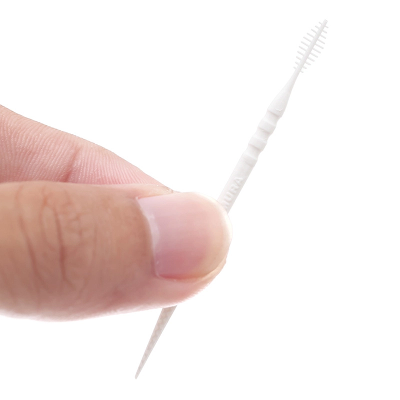 - Cho đầu tăm Okamura vào các kẽ răng, nhẹ nhàng làm sạch răng và massage nướu, cứ làm như vậy cho đến khi hoàn tất các kẽ răng