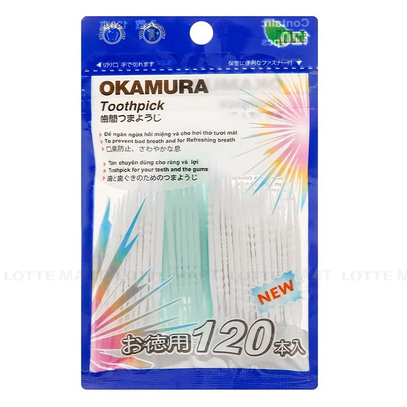 - Tăm Nhựa Okamura Gói 120 Cây nhìn bề ngoài khá đơn giản nhưng nhưng khi sử dụng sẽ cho người dùng cảm nhận khác biệt về sản phẩm với cấu trúc phù hợp, bảo vệ răng miệng và không gây chảy máu chân răng.