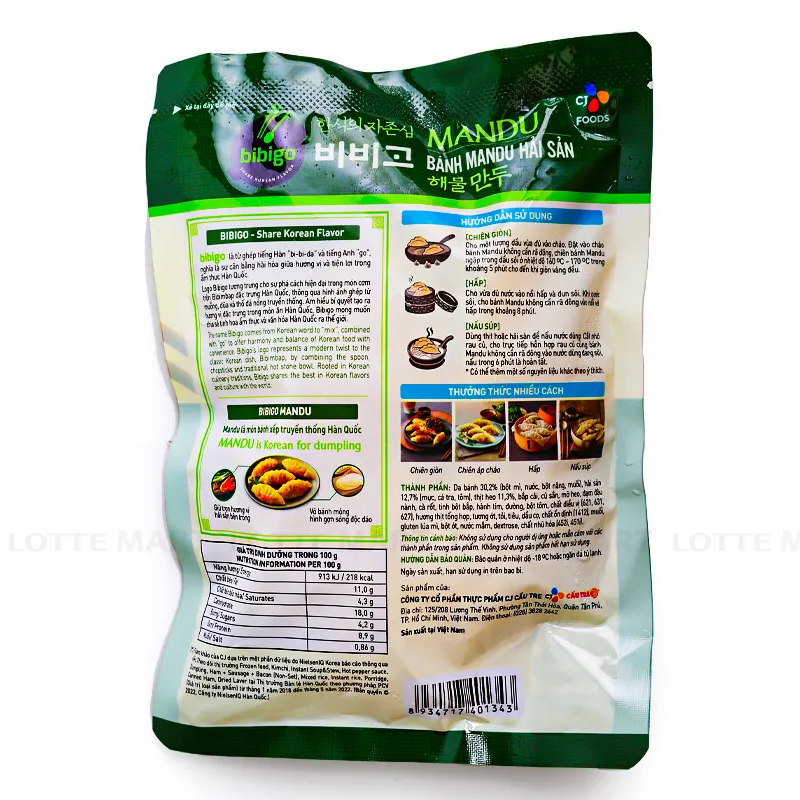 - Bánh Xếp Mandu bibigo Nhân Hải Sản là giải pháp nhanh chóng đối với những người bận rộn, không có nhiều thời gian chuẩn bị bữa ăn. Sản phẩm giúp tiết kiệm thời gian trong khâu sơ chế, chế biến mang đến cho bạn bữa ăn ngon và đầy đủ chất dinh dưỡng.