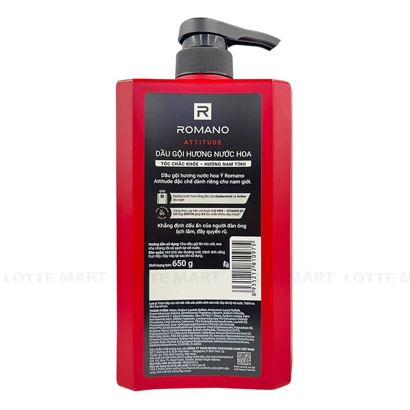 Dầu Gội Romano Attitide 650G công thức cải tiến với thành phần Pro Vitamin B5 cho mái tóc mềm mại và chắc khỏe hơn. Cùng với hương thơm độc đáo, sản phẩm mang đến cho phái mạnh phong cách lịch lãm và đầy quyến rũ.