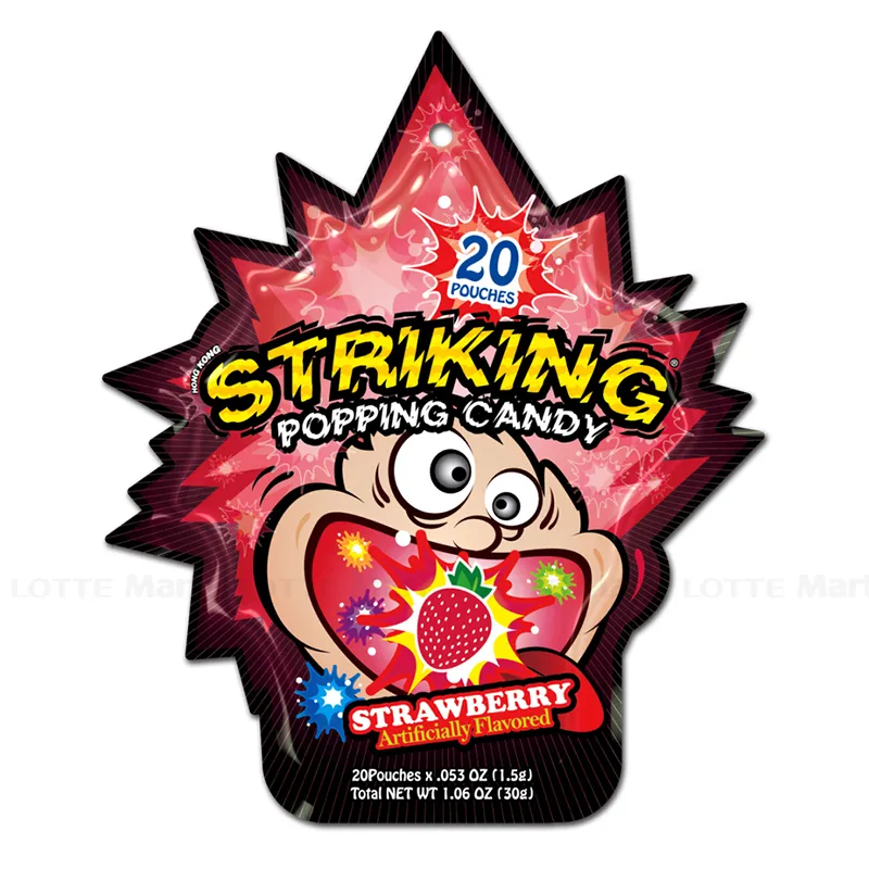 - Kẹo Mút Nổ Striking Hương Dâu là loại kẹo nổ gồm 1 cây kẹo lollipop với hình dáng ngộ nghĩnh với bột kẹo nổ.