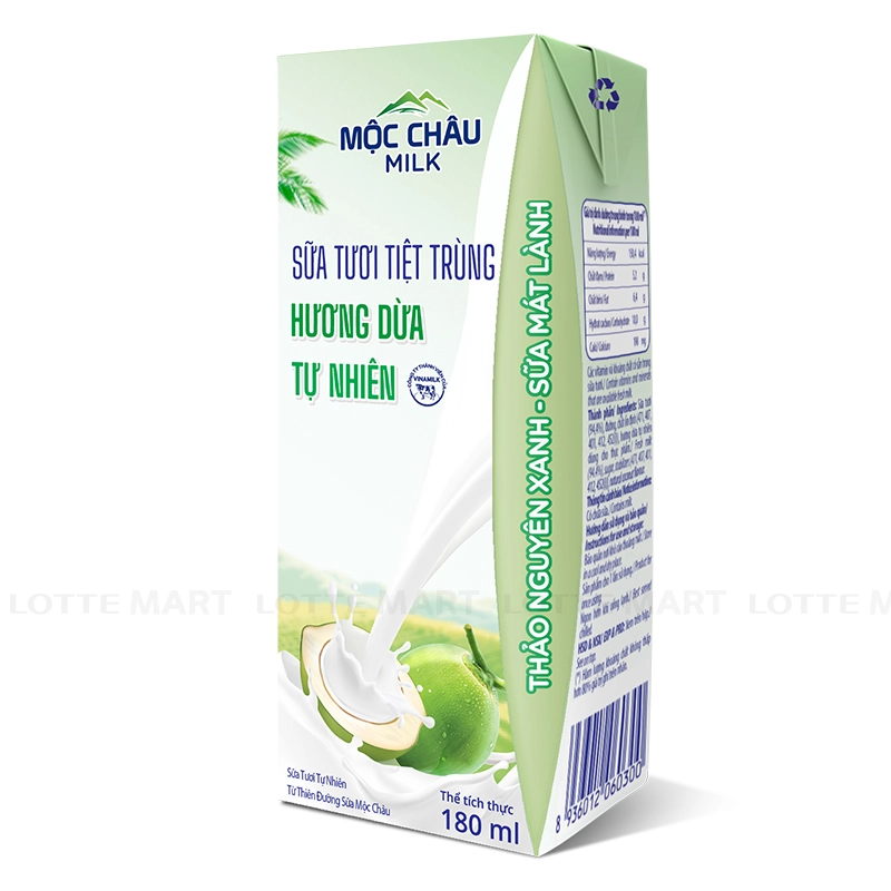 • Sữa Tươi Tiệt Trùng Mộc Châu Hương Dừa Lốc 4 Hộp 180ml được chế biến từ nguồn sữa tươi thuần khiết trên thảo nguyên Mộc Châu kết hợp với công nghệ từ Châu Âu, tạo ra những sản phẩm sữa tươi trọn vẹn tự nhiên, giàu dinh dưỡng, ngọt lành tươi mát, tốt cho sức khỏe mọi người.