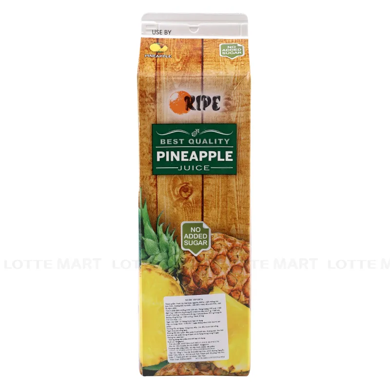 - Nước Ép Thơm Ripe Hộp 1L là sản phẩm nhập khẩu từ Singapore, được làm từ nguồn nguyên liệu trái cây được chọn lọc kĩ càng, sau đó chỉ lựa chọn những quả tươi và tươi tốt để chế biến.