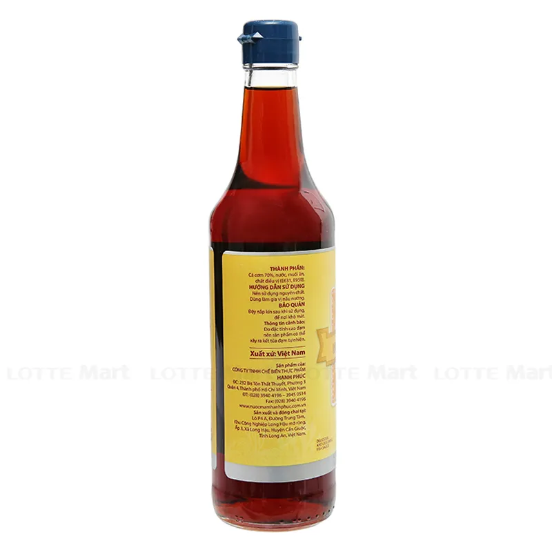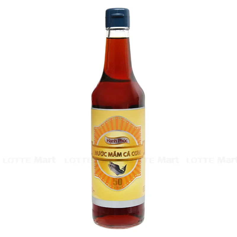 - Nước mắm cá cơm Hạnh Phúc 50 độ đạm chai 500ml vừa mang đậm hương vị đặc trưng của nước mắm hảo hạng vừa có vị đậm đà của nước mắm truyền thống. Sản phẩm là sự lựa chọn hợp lý cho các bữa ăn, nên sử dụng nguyên chất không cần pha chế thêm.