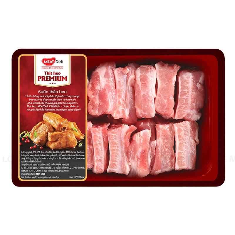 Sườn Thăn Đặc Biệt Meat Deli được chế biến từ những miếng sườn thăn tươi ngon, lựa chọn từ nguồn thịt heo chất lượng cao, đảm bảo độ mềm, ngọt và ngon miệng.