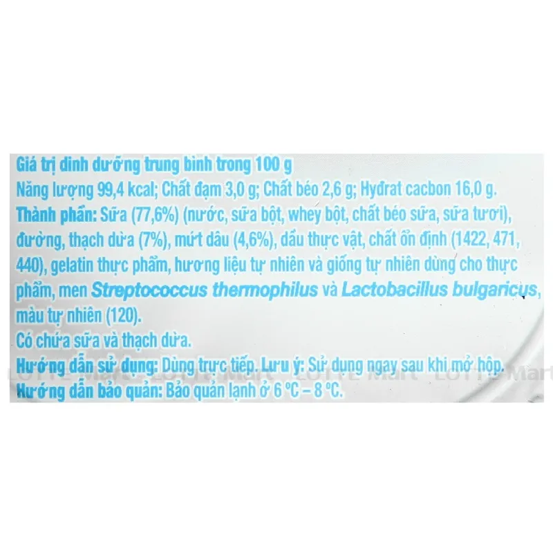 - Hơn nữa, sản phẩm được ra đời thông qua công nghệ lên men hiện đại từ châu Âu với chủng men thuần khiết Bulgaricus, không chứa chất phụ gia độc hải rất an toàn và đảm bảo an toàn vệ sinh thực phẩm.