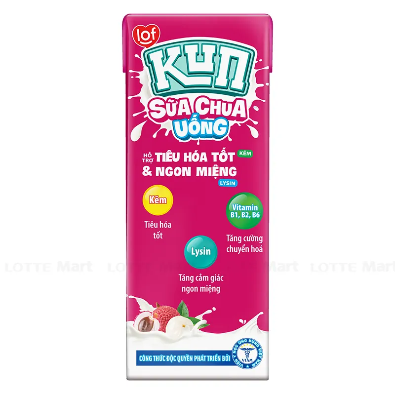 - Sữa Chua Uống Kun Hương Vải Lốc 4 Hộp 180ml dạng hộp mới bổ sung vitamin A Hỗ Trợ SÁNG MẮT, công thức cải tiến thêm CANXI cải thiện tăng Chiều CAO, Vitamin A giúp sáng mắt, Vitamin B6 kết hợp cùng Kẽm hỗ trợ phát triển hệ thần kinh và Vitamin C tăng sức đề kháng, tăng cường hệ miễn dịch ở trẻ.