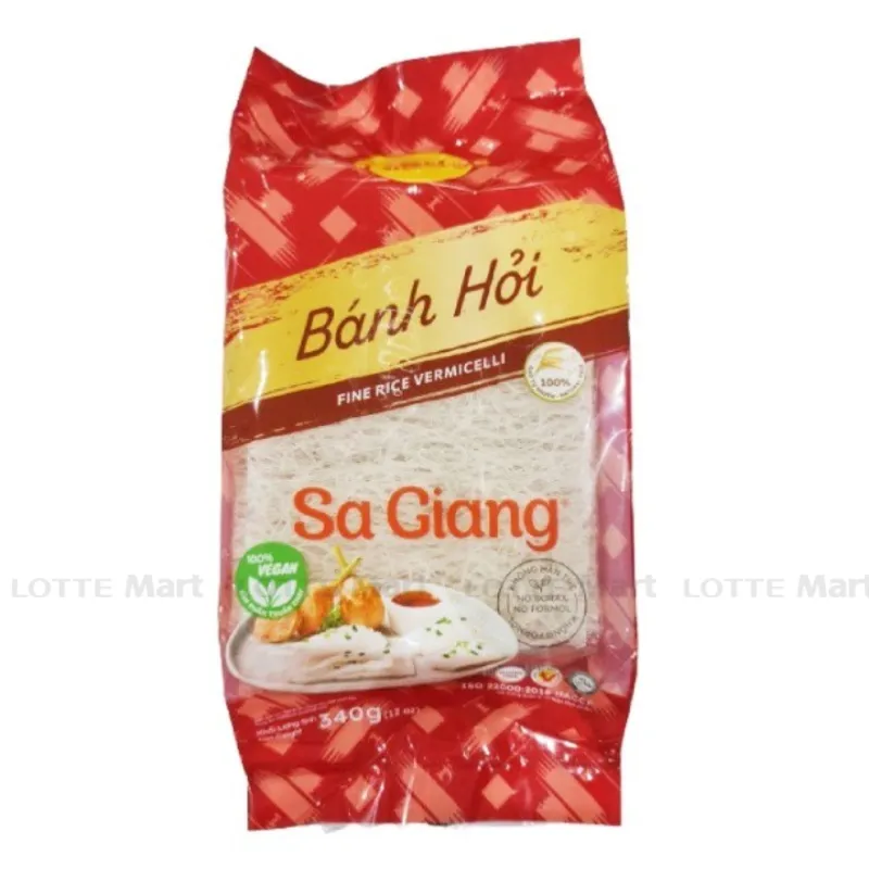 Bánh Hỏi Sa Giang Gói 340g là một món ăn truyền thống của Việt Nam, với nhiều sợi bún nhỏ, mạnh dệt lại thành từng bó, rưới nhẹ lên hành lá băm nhỏ hoặc lá hẹ xào qua dầu, ăn kèm với thịt hoặc hải sản.