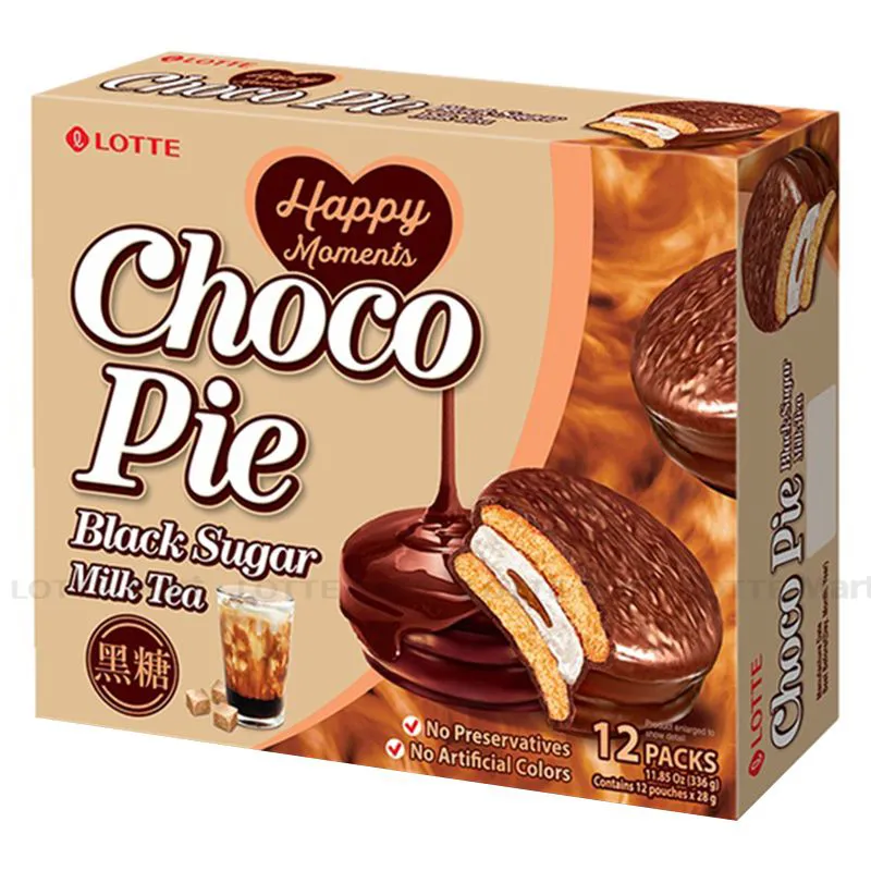 Lotte Chocopie cake with black sugar milk tea box 336g (12 packs)
