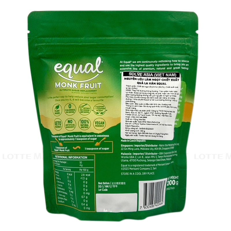 Equal Monk Fruit Natural Sugar Replacement 200G