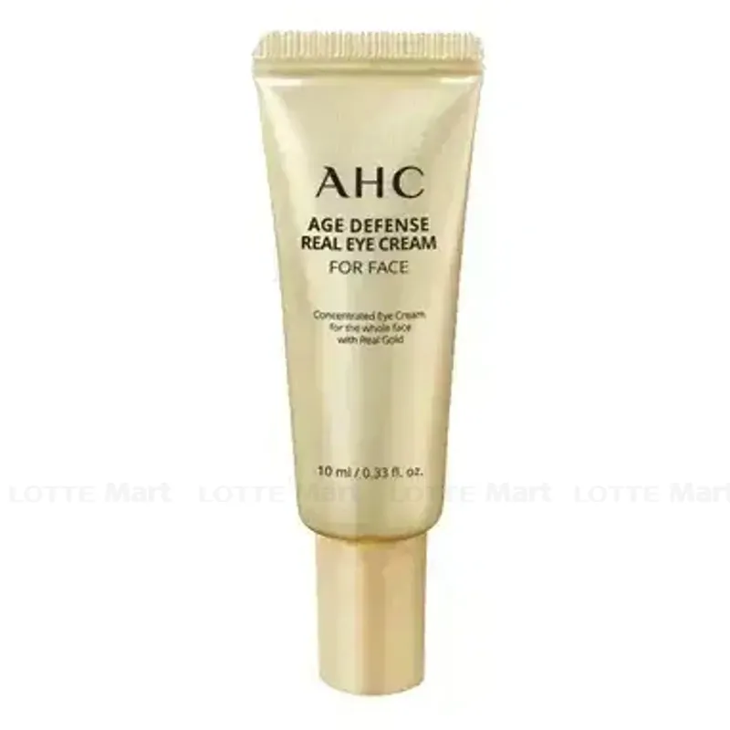 Kem Dưỡng Mắt 2 Trong 1 AHC Age Defense Real Eye Cream For Face 10ml giúp chống lại 7 loại nếp nhăn trong 7 ngày. Công nghệ độc quyền Gold Peptide tăng tỷ lệ sản sinh collagen 173% và giảm 55% nếp nhăn trong vòng 4 tuần. Phức hợp Power Golden Thread mang 4 loại hợp chất sợi vàng giúp tăng cường tác dụng chống lão hoá.