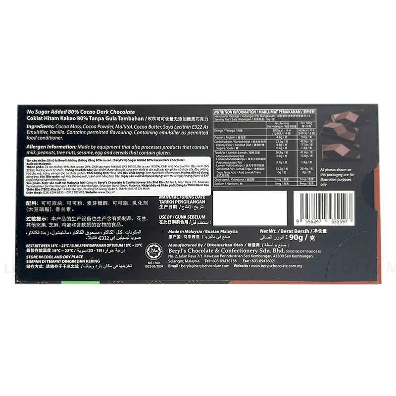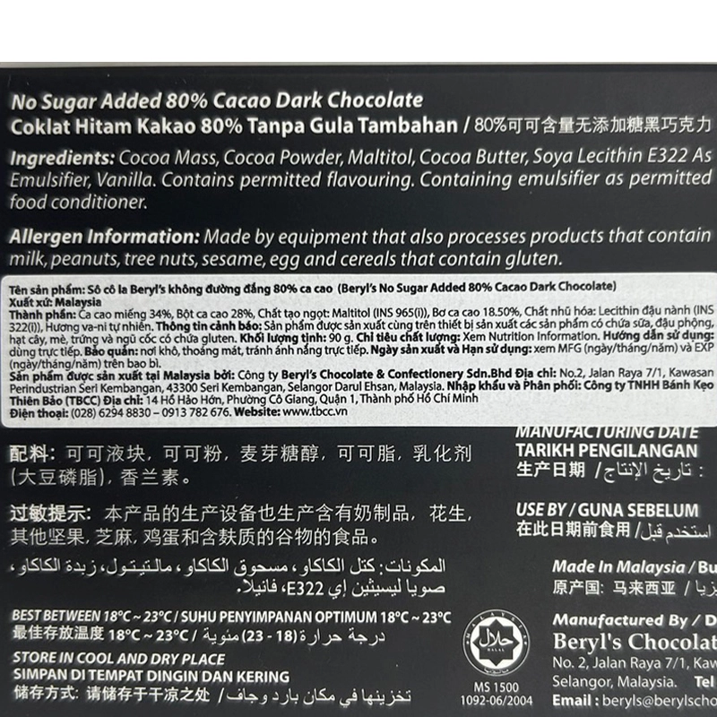 SOCOLA BERYLS K.DG 80% CACAO DARK 90G