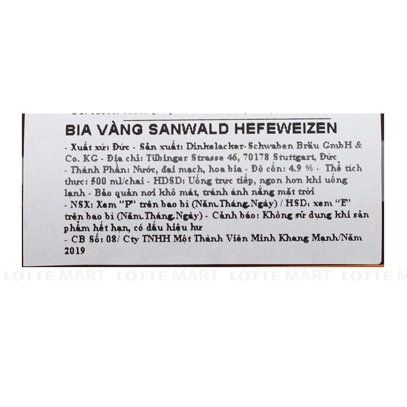 Sanwald Hefe Weizen Beer 4.9% ABV 500ml