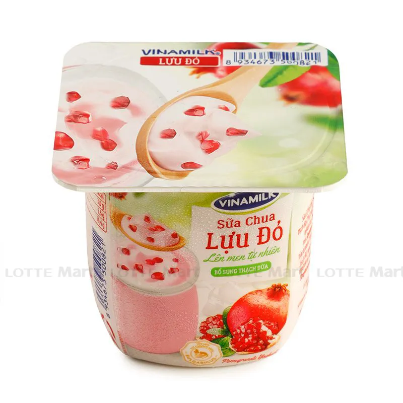 Đặc điểm nổi bật: Sử dụng công nghệ lên men hiện đại từ châu Âu, hỗ trợ tiêu hóa và giúp hấp thu dưỡng chất. Sữa chua lựu đỏ Vinamilk với vị chua ngọt thanh mát của lựu đỏ, thêm thạch giòn dai cho vị ngon khó cưỡng hoà cùng lớp sữa chua béo ngậy, sánh mịn.