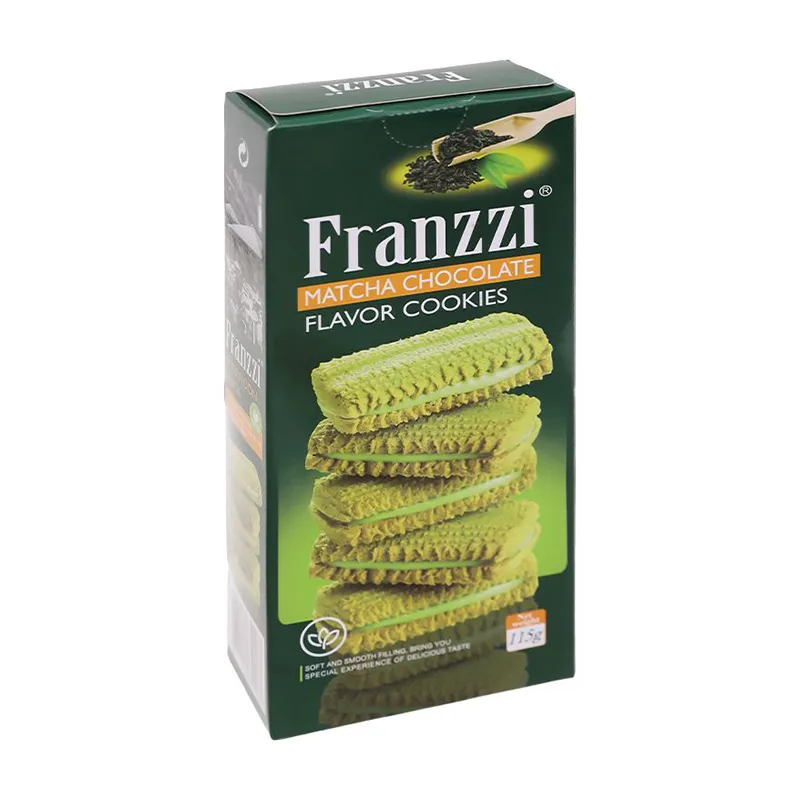 Bánh quy Franzzi thơm ngon đến khó cưỡng, là sự lựa chọn hoàn hảo dành cho bạn. Bánh quy vị sô cô la trà xanh Franzzi hộp 115g với vị socola trà xanh tự nhiên tạo nên một loại bánh có vị ngọt thanh không quá gắt. Bánh quy không cứng cũng không quá mềm tan chảy ngay lần chạm đầu tiên.