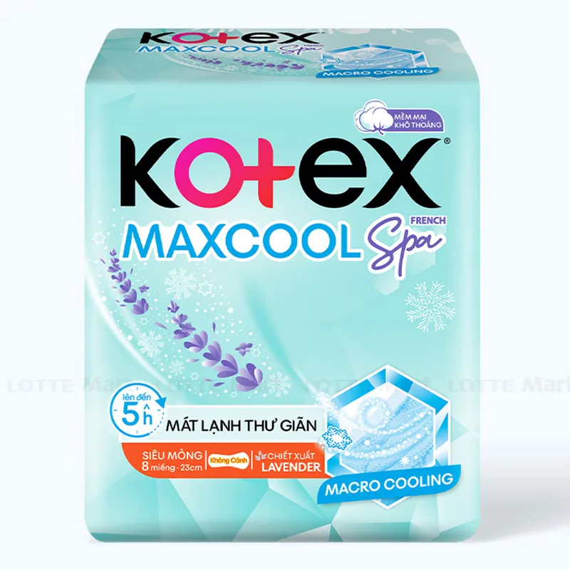 Băng Vệ Sinh Thảo Dược Kotex MaxCool Siêu Mỏng Không Cánh được thiết kế với bề mặt bông mềm mại và khô thoáng nhờ công nghệ tác động kép.