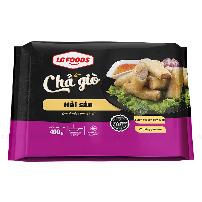 - Chả Giò Hải Sản LC Foods Gói 400G được làm từ nguyên liệu chọn lọc, có vỏ ngoài mỏng vàng tươi, nhân bên trong thơm ngon, giòn tan trong miệng với mực giòn giòn, tôm đậm đà và dinh dưỡng. Không cần rã đông chỉ cần chiên là có ngay món chả giò nóng hổi.