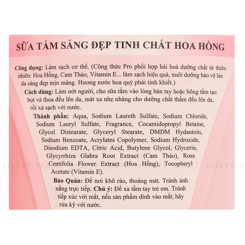 Sữa Tắm Sáng Đẹp Tinh Chất Hoa Hồng Thebol Chai 1200G được sản xuất và chế biến với công thức độc đáo, không có các chất gây kích ứng cho da. Sản phẩm gồm tinh chất hoa hồng đem lại làn da trắng mịn, hương thơm nồng nàn, quyến rũ. Thành phần: Nước, glycerin, sodium chloride, fragrance, sodium laureth sulfate, glycol distearate,...