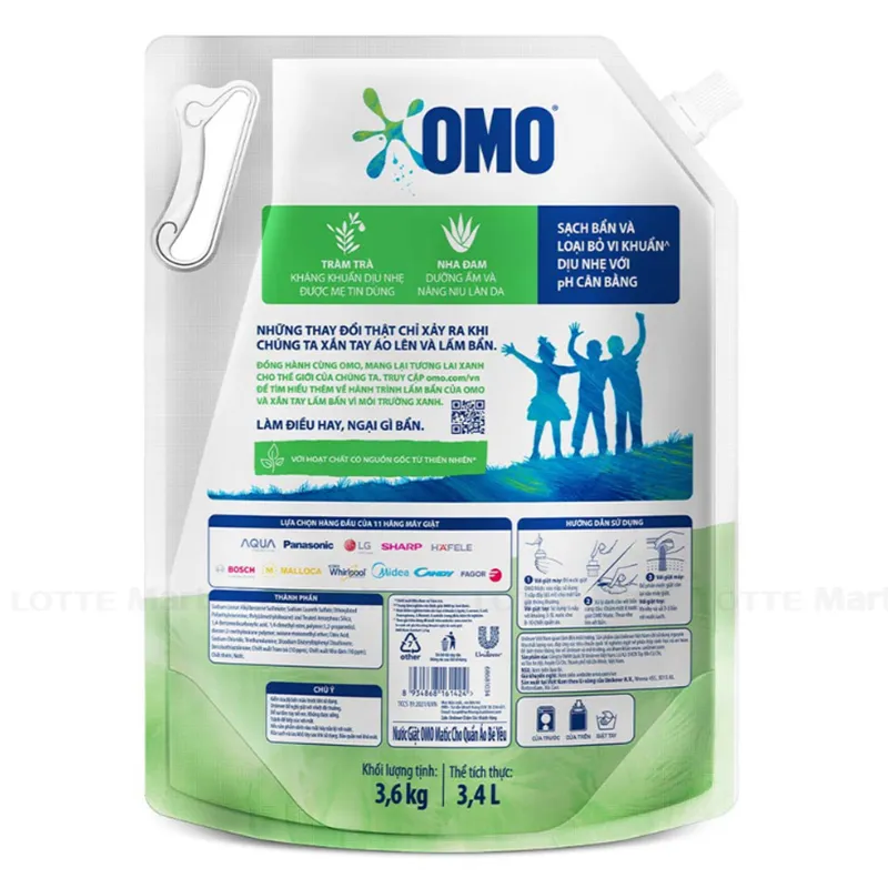 Nước Giặt Omo Matic Dịu Nhẹ Cho Quần Áo Bé Yêu Túi 4.1kg với công thức chuyên dụng làm sạch dịu nhẹ từ Anh Quốc và thành phần có chứa chiết xuất tràm trà và nha đam, giúp chăm sóc dịu nhẹ từng sợi vải, giúp loại bỏ vết bẩn cà vi khuẩn, giữ áo quần và đồ dùng của em bé luôn mềm mại. Mang đến cho mẹ sự yên tâm khi sử dụng cho áo quần và đồ dùng của bé.