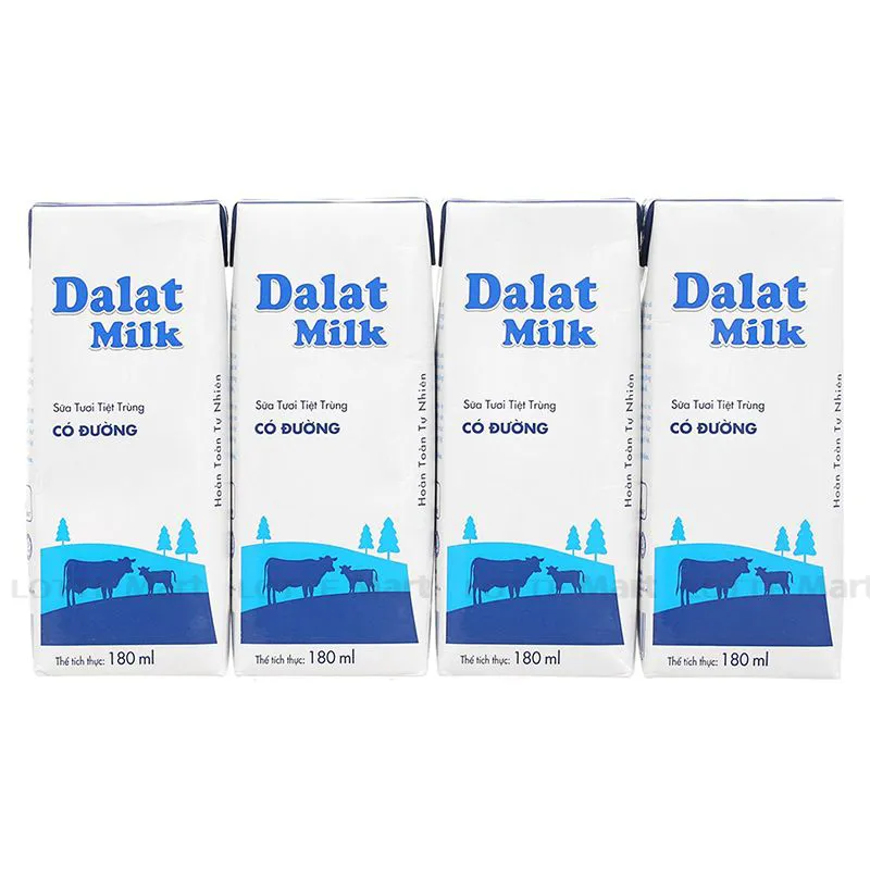 Dalat Milk UHT Sweetened Milk 180ml (Lot of 4 Boxes)