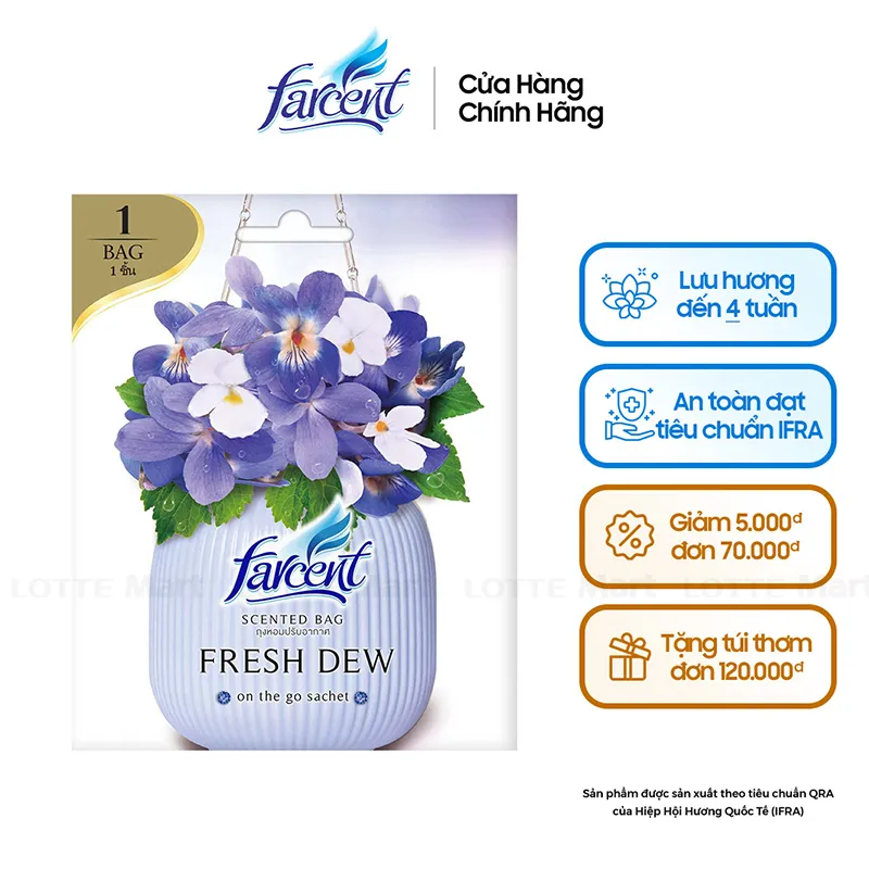 Túi Thơm Farcent với thành phần đặc biệt, giúp tạo hương thơm tinh tế cho quần áo. Hương thơm dễ chịu, bắt đầu cho ngày mới tràn đầy năng lượng Với túi thơm này, bạn có thể sử dụng đến 06 tuần. Trọng lượng nhẹ, bao bì bắt mắt tiện lợi khi sử dụng.