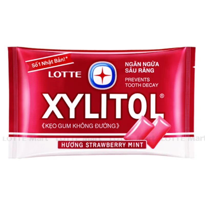 Kẹo Gum Xylitol Hương Strawberry Mint với công thức mới và hàm lượng chất ngọt tự nhiên Xylitol chiếm hơn 50% trong thành phần làm ngọt nên kẹo gum Lotte Xylitol có tác dụng ngăn ngừa sâu răng hiệu quả.