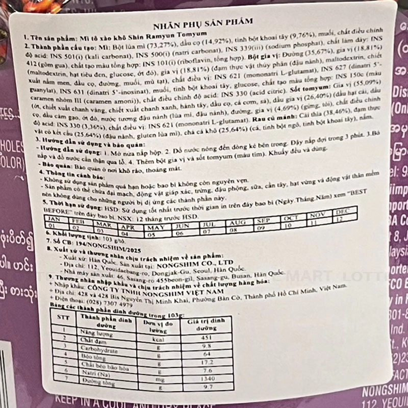 Nongshim Shin Ramyun Tom Yum Stir Fry Instant Noodles 103G