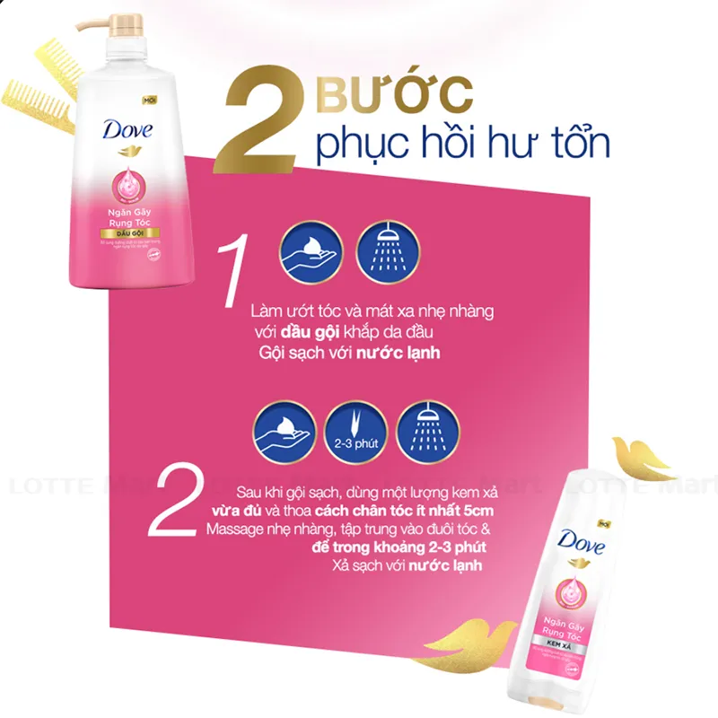 Giúp ngăn gãy rụng từ gốc, cho tóc chắc khỏe gấp 5 lần khi sử dụng thường xuyên trọn bộ dầu gội và kem xả Dove Ngăn Gãy Rụng Tóc.