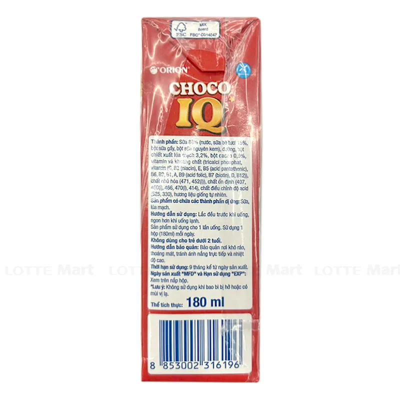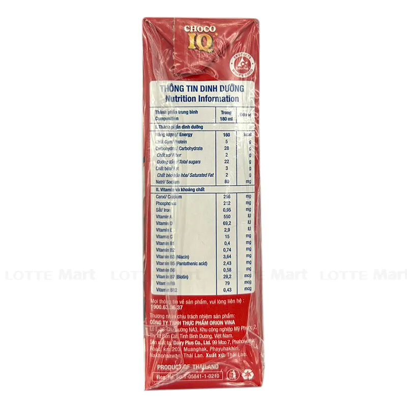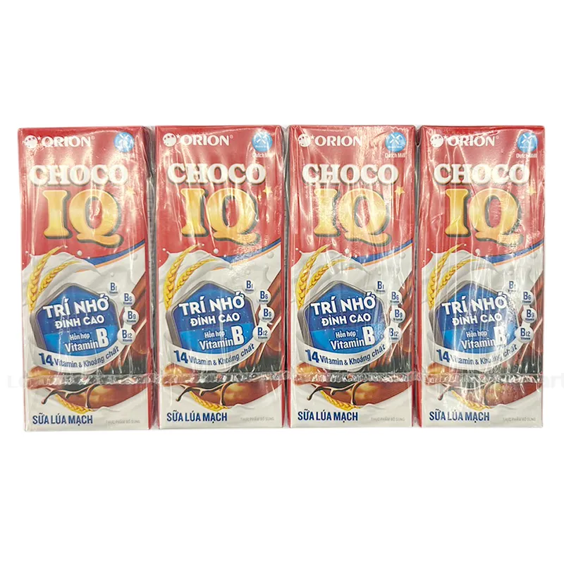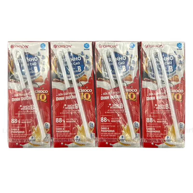 - Sữa Cacao Lúa Mạch Orion Choco Lốc 4 Hộp 180ml là thức uống sữa lúa mạch vị Sô-cô-la được làm từ sữa bò tươi tự nhiên kết hợp với mầm lúa mạch giàu dinh dưỡng. Sản phẩm chứa hơn 14 loại vitamin và khoáng chất vượt trội giúp bé phát triển toàn diện về chiều cao, hệ xương và trí não. Đặc biệt, Choco IQ cung cấp hơn 25% nhu cầu vitamin B cần thiết hỗ trợ phát triển trí não và tăng cường trí nhớ cho trẻ hiệu quả.