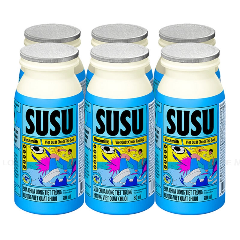 - Sữa Chua Uống Susu Hương Việt Quất Chuối Lốc 6 Chai 80ml lên men tự nhiên với Vitamin A cho đôi mắt sáng tinh anh, Ngoài ra còn có Vitamin B6, B12 và chất xơ hòa tan giúp bé khỏe mạnh và năng động mỗi ngày.