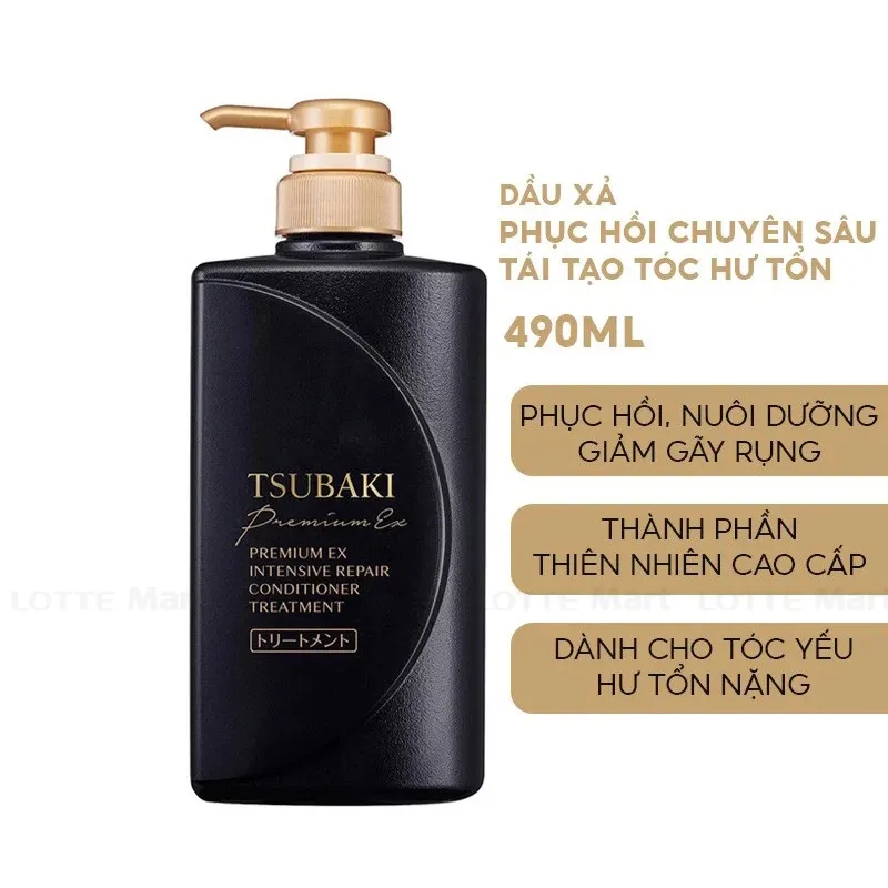- Với thành phần là các hoạt chất tự nhiên cao cấp, Dầu Xả Tsubaki Phục Hồi Chuyên Sâu & Tái Tạo Tóc Hư Tổn Premium Ex Intensive Repair 490ml có khả năng cải thiện tình trạng hư tổn của tóc do sử dụng hoá chất. Các dấu hiệu như chẻ ngọn, gãy rụng, khô xơ sẽ giảm thiểu rõ rệt chỉ sau vài lần sử dụng.