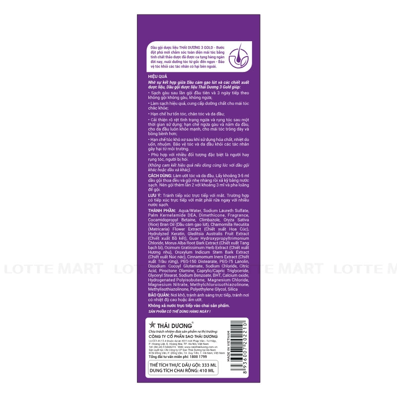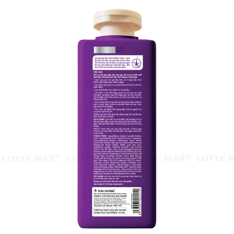 Thai Duong 3 Gold Herbal Shampoo Lotus Scent Helps Clean Dandruff uses a herbal formula to remove dandruff and dirt, maintaining a clean and airy scalp feeling.
