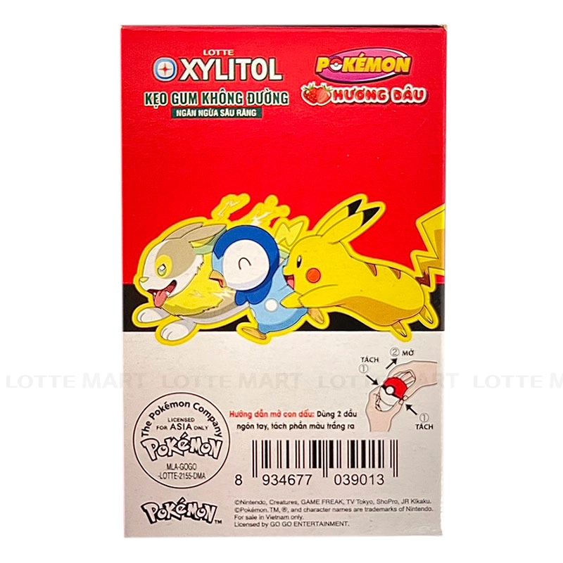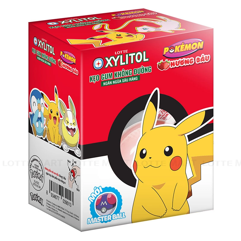 Lotte Xylitol Pokemon Strawberry Sugar-Free Chewing Gum is a sugar-free product, specially designed to prevent tooth decay.