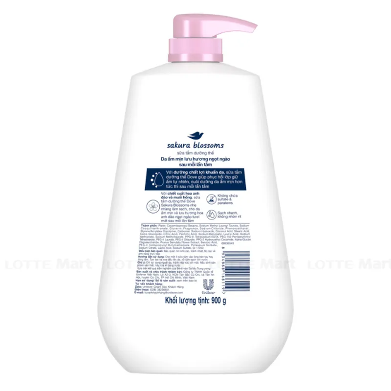 Sữa Tắm Dưỡng Thể Dove Hoa Anh Đào Và Muối Hồng 900g với chiết xuất hoa anh đào và muối hồng cùng công thức sạch nhanh, không nhờn rít với lớp bọt dày mịn nhẹ nhàng làm sạch, cho da mềm mịn và lưu hương hoa anh đào ngọt ngào tươi mát sau mỗi lần tắm.