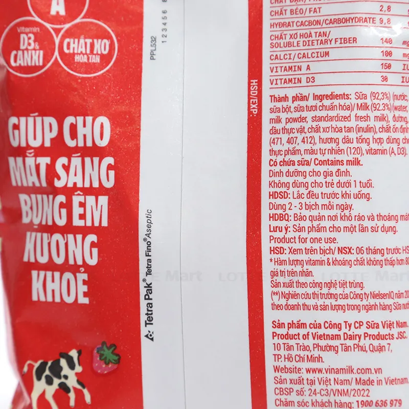- Vinamilk Nutritious Milk Strawberry Flavor 220ml is made from 100% pure fresh cow's milk from large farms spread across Vietnam.
