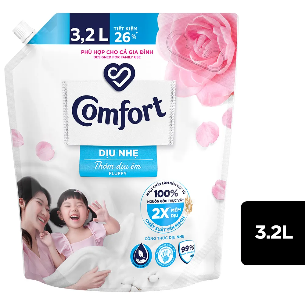 - Nước Xả Vải Comfort Dịu Nhẹ Thơm Dịu Êm giúp làm mềm vải sau 20 lần giặt, ngừa xù lông vải và ngăn áo quần tĩnh điện mùa đông, khử mùi hôi sữa hay chất thải của bé trên áo quần, giúp áo quần khô nhanh hơn.