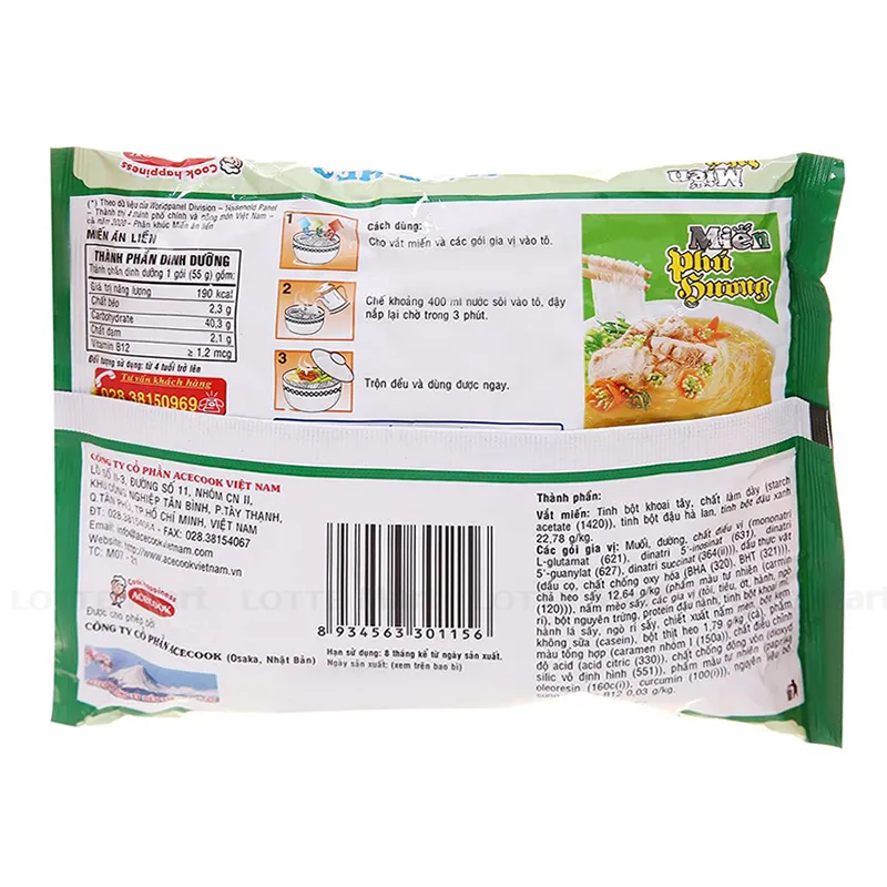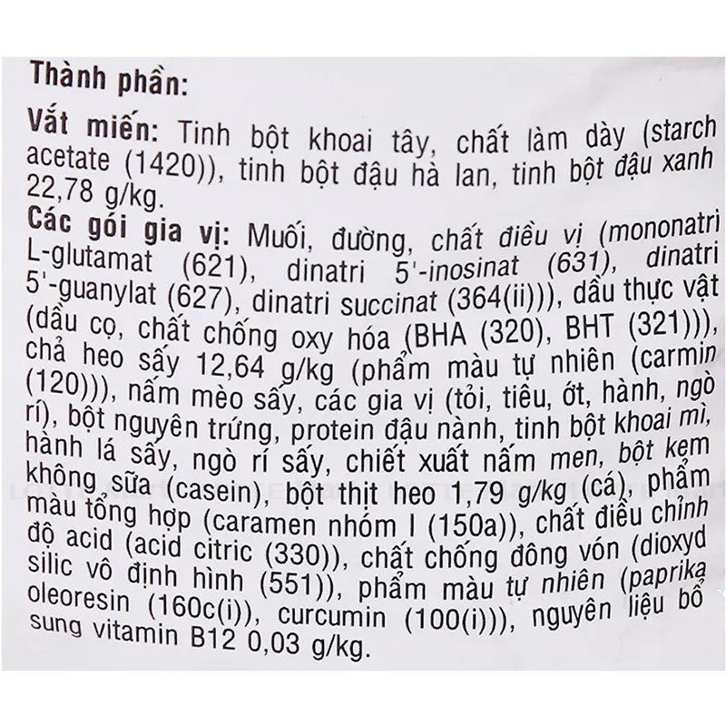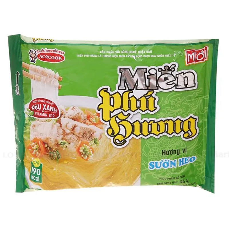 Phu Huong 돼지갈비 당면은 현대 일본기술 라인에서 생산되므로 안전할 뿐만 아니라 품질도 좋다. 이 제품은 녹두, 녹말 성분을 함유하고 있으며, Phu Huong 당면의 각 섬유는 단단하고 바삭 바삭하며 분쇄되지 않다.