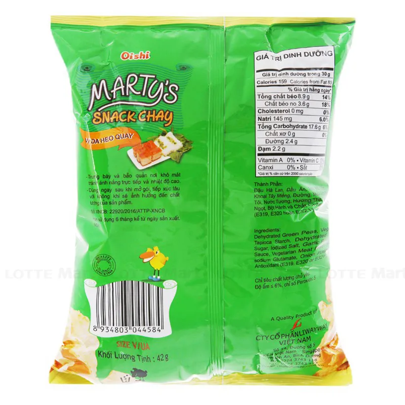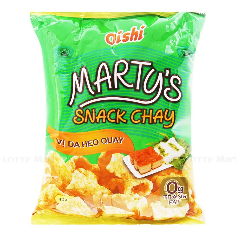 - Snack Chay Oishi Vị Da Heo Quay với những miếng bánh snack giòn rụm, được tẩm hương vị thơm ngon, đậm đà đầy hấp dẫn sẽ khiến bạn thích mê. Bánh snack có dạng miếng nhỏ vừa ăn, hình dáng ngộ nghĩnh, đẹp mắt.
